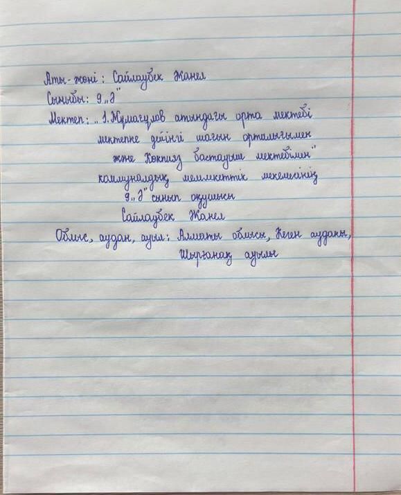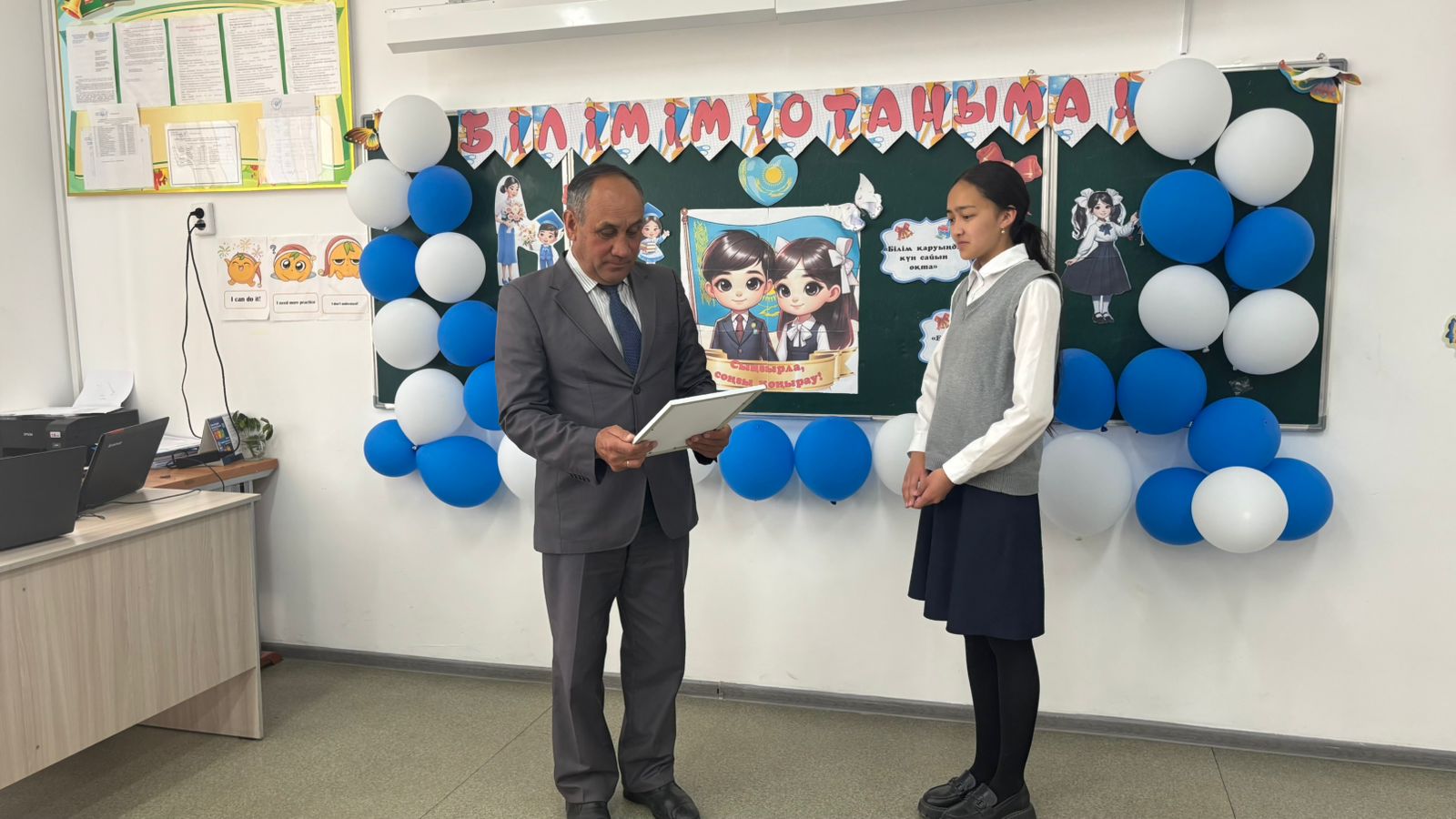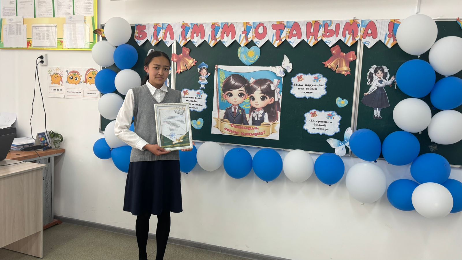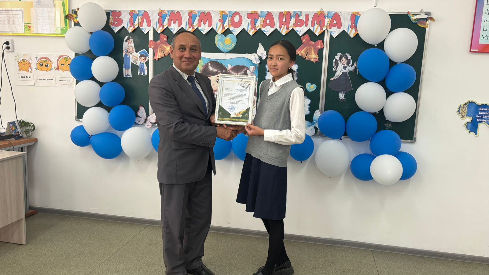 9”ә” сынып оқушысы Сайлаубек Жанелдің жұмысы үздік деп танылып ауданға жолданды.