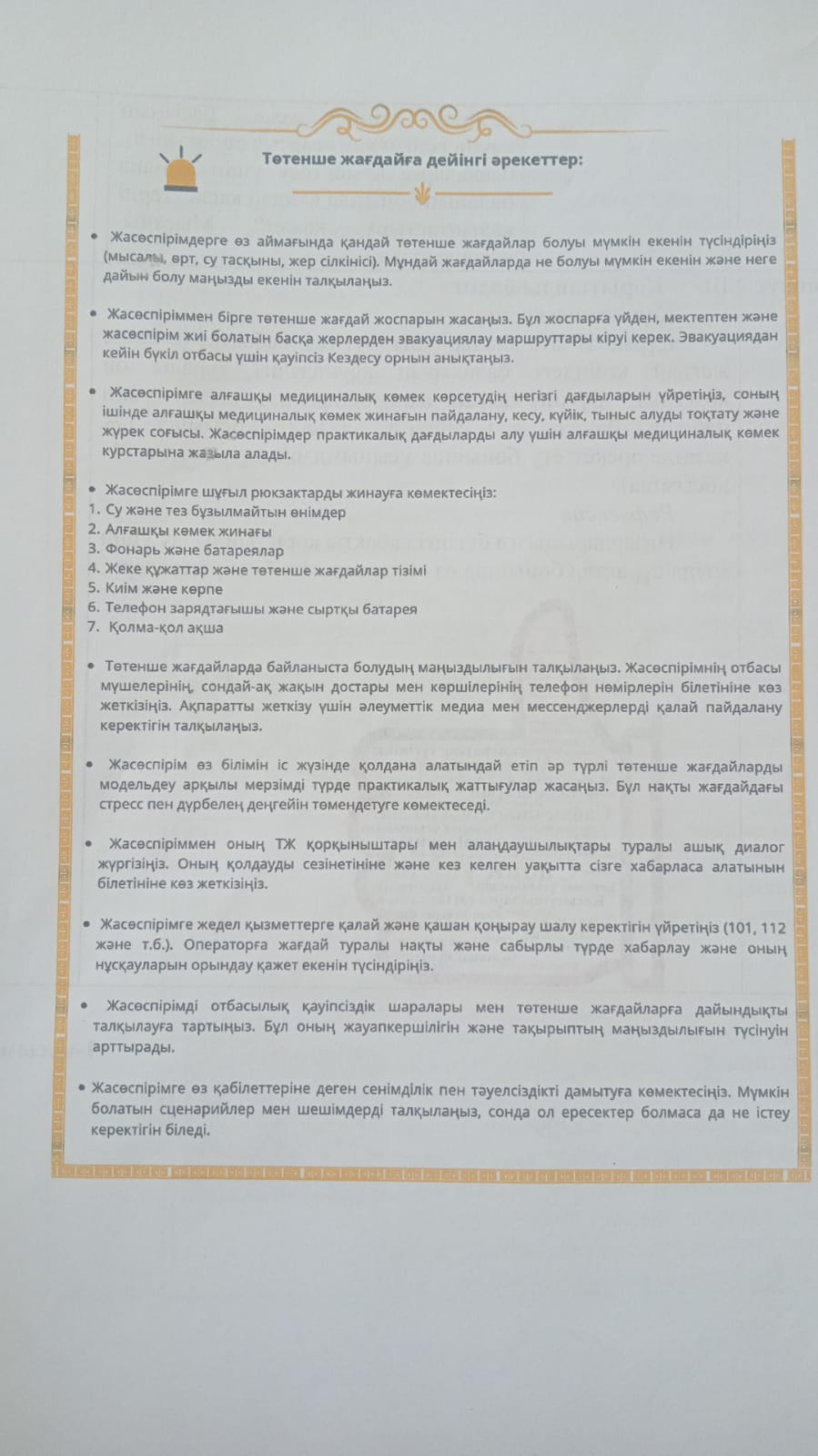 Тақырыбы: “Ауыр жүк атанды, іс адамды сынайды.Сіздің балаңыз төтенше жағдайға дайын ба?”